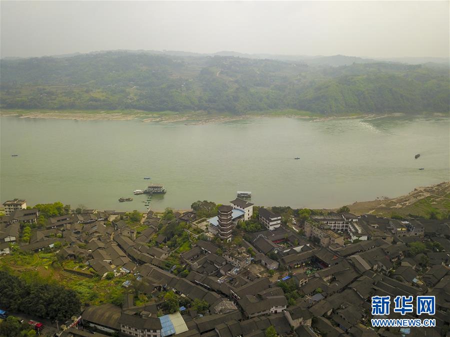 紧邻长江的松溉古镇(4月4日无人机拍摄)。松溉古镇位于重庆市永川区,有着“一品古镇,十里老街,百年风云,千载文脉,万里长江”的美誉。2008年松溉古镇入选第四批国家级历史文化名镇。新华社记者 刘潺 摄