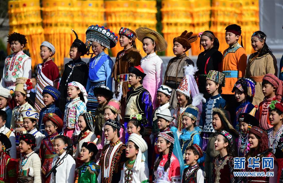 4月5日,演员在公祭轩辕黄帝典礼上演唱。当日,己亥年清明公祭轩辕黄帝典礼在陕西省黄陵县桥山祭祀广场举行,万余名海内外中华儿女参加仪式。 新华社记者 李一博 摄