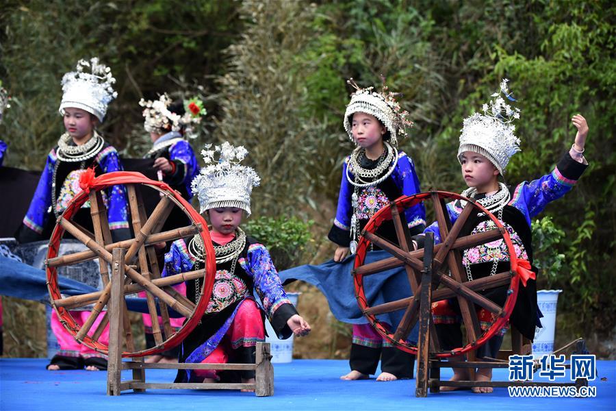 几名苗族女孩在参加非遗手工艺展演活动(4月6日摄)。4月6日至7日,在贵州省黔东南苗族侗族自治州剑河县观么镇新民村和新合村,来自剑河县和三穗县的苗族同胞欢聚一堂,通过民族歌舞展演、非遗手工艺展示、千户祭“巫耶”、跳芦笙舞等形式,与来宾一起欢庆2019年高雍苗族“三月三”民俗文化节。 新华社记者 杨文斌 摄