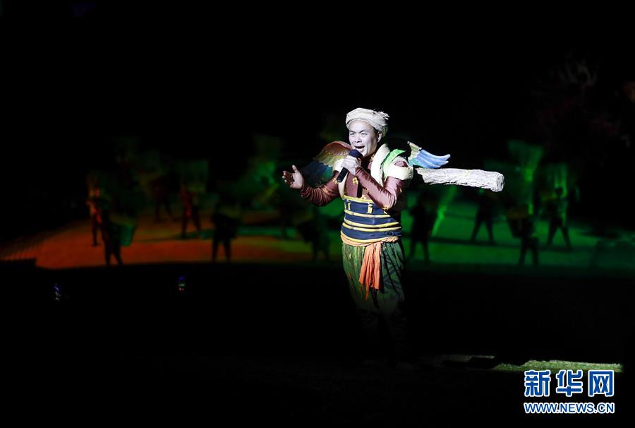 杨兴勇在《印象武隆》的舞台上演唱《川江号子》(3月26日摄)