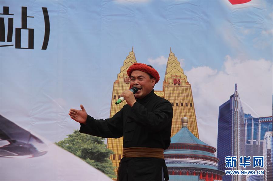 在2014年“川江号子”上海行活动中,杨兴勇在演唱《川江号子》(资料照片)。新华社发(《印象武隆》剧团提供)
