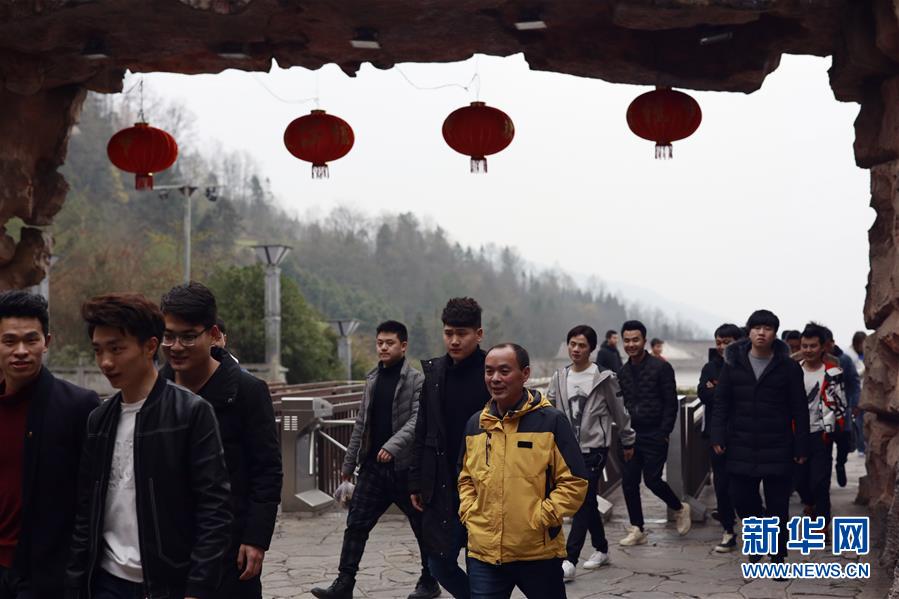 下午6点多,杨兴勇(黄色外套者)和同事们一起排队进入剧场,为演出做准备(3月27日摄)。新华社记者 刘潺 摄