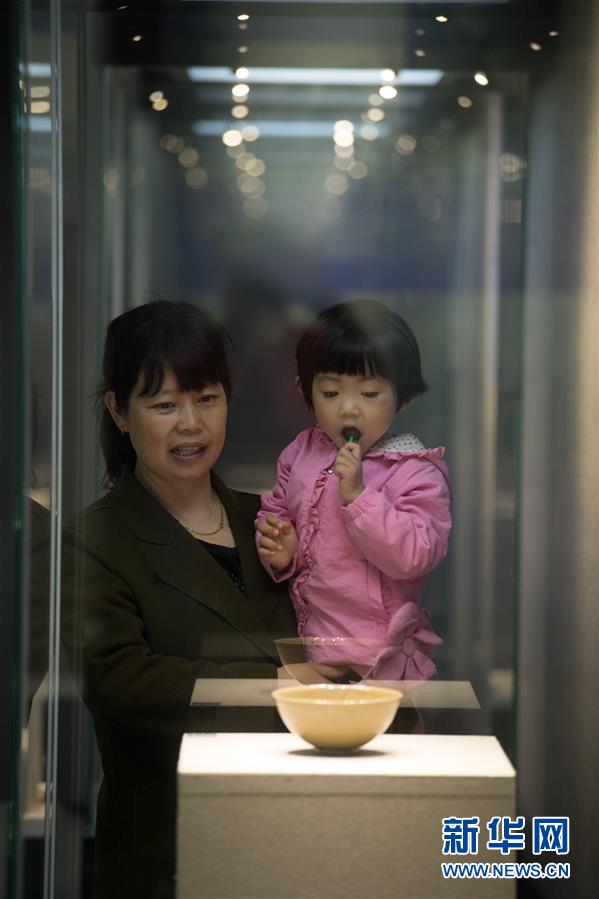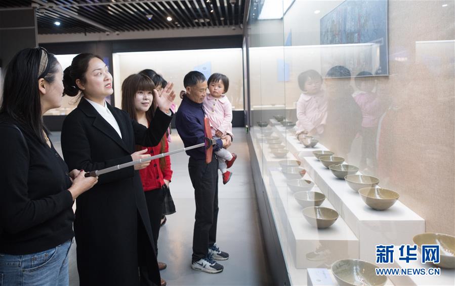 4月9日,观众在龙泉青瓷博物馆参观“南海I号”出水的龙泉青瓷文物。