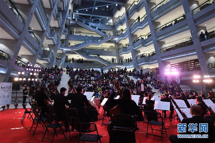 4月9日,山西省交响乐团在太原市图书馆内演奏。 新华社记者 杨晨光 摄