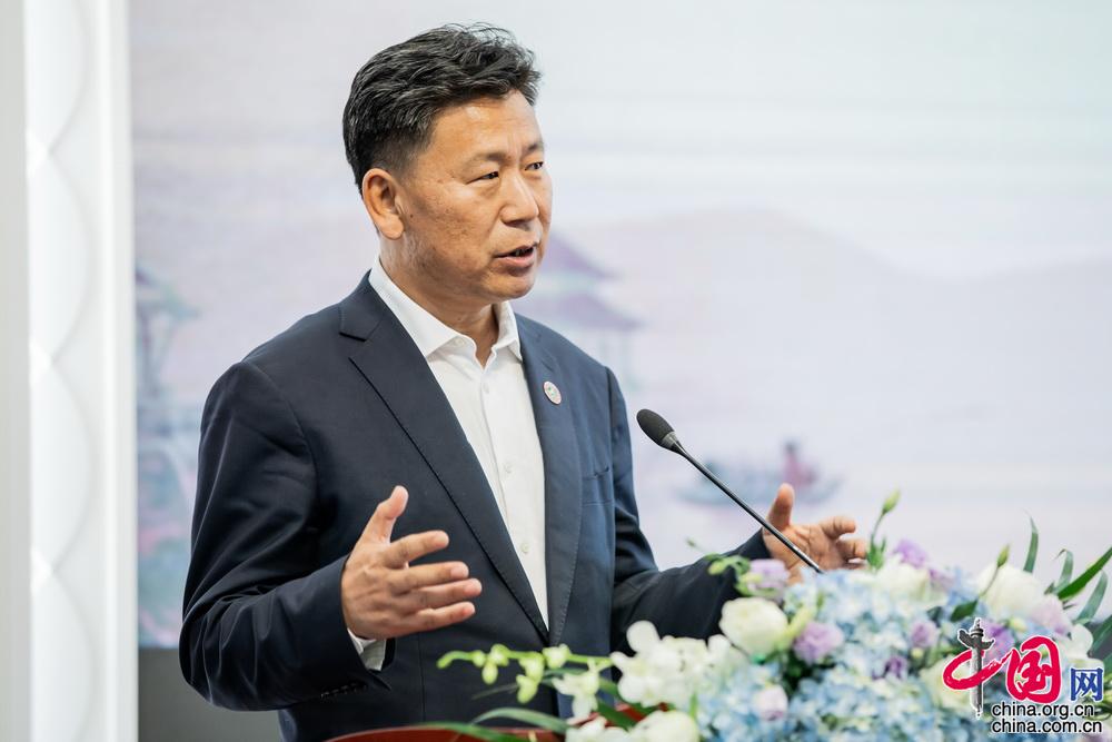 他首先代表教育部体育卫生与艺术司对基地揭牌表示热烈祝贺!随后他表示开展中华优秀传统文化传承基地建设活动,是不断创新新时代高校传承中华优秀传统文化的理念、形式与方法,推动中华优秀传统文化创造性、转化和创新性发展的重要举措;是提高学生审美和人文素养,引领学生做中华优秀传统文化的忠实继承者和弘扬者,汲取中国智慧、弘扬中国精神、传播中国价值,坚定文化自信、增强文化自觉的重要途径;是充分发挥中华优秀传统文化育人作用,落实立德树人根本任务,以美育人、以文化人,探索学科融合协调发展,整合优化教育资源,全面提升高校美育体育质量的创新之举。中国网记者 郑亮摄
