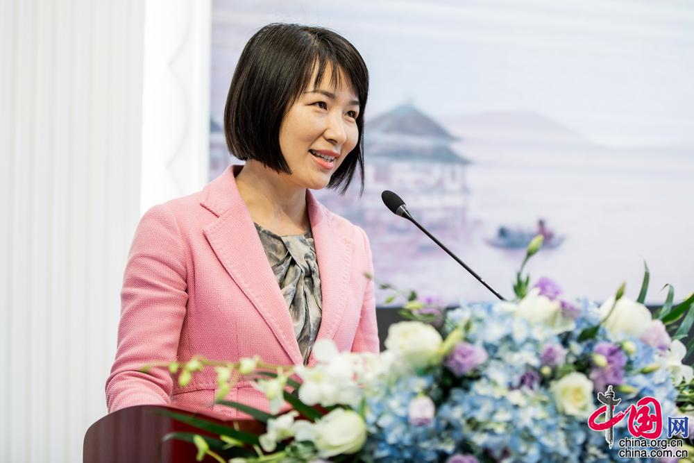 国务院参事室中华诗词研究院杨志新副院长代表中央文史馆袁行霈馆长致辞。中国网记者 郑亮摄