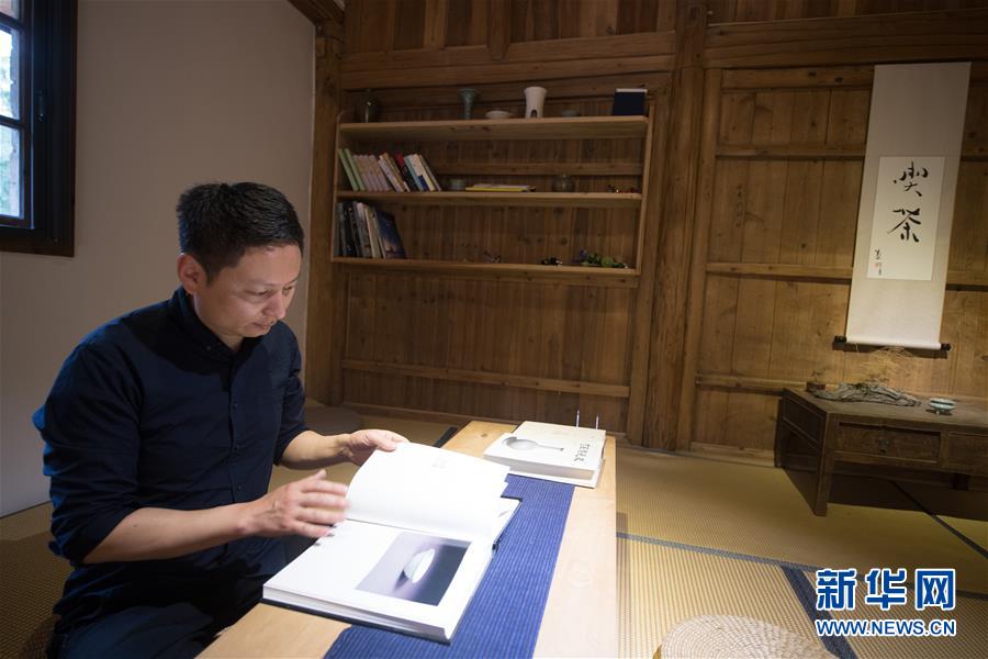 4月10日,刘杰在浙江龙泉市兰巨乡大汪村“在山堂”工作室阅读龙泉窑相关书籍。新华社记者 翁忻旸 摄