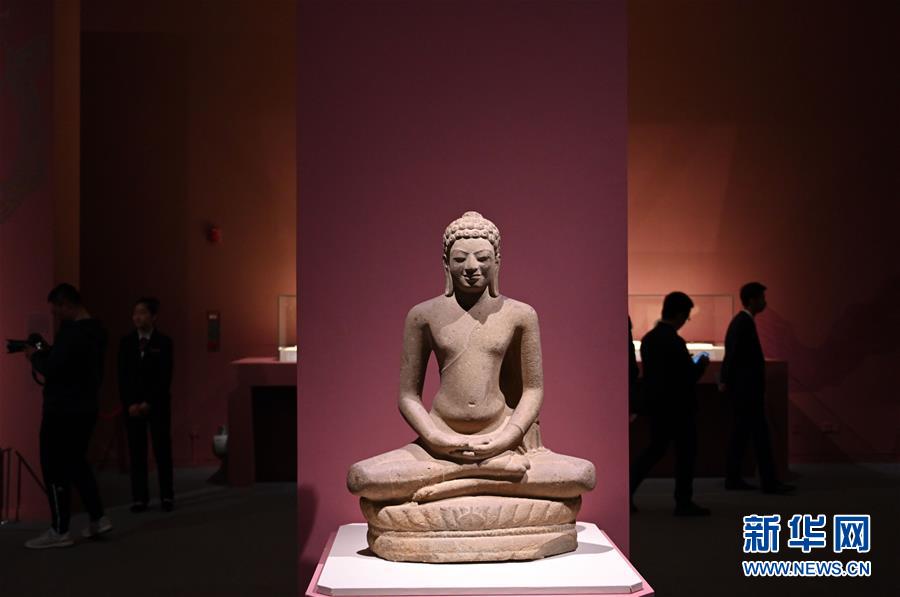 这是展出的柬埔寨国家博物馆藏的佛像(4月11日摄)。
