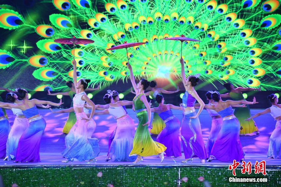 4月11日晚,中国德宏2019国际泼水狂欢节暨第十届世界云南同乡联谊大会迎宾晚会,在德宏傣族景颇族自治州芒市上演,为在场观众献上了一场视觉和听觉的饕餮盛宴,拉开一年一度泼水节序幕。中新社记者 刘冉阳 摄