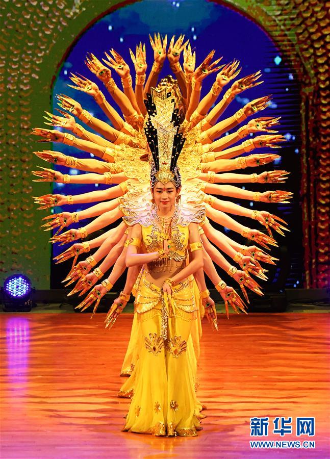 4月12日,演员在表演舞蹈《千手观音》。 当晚,中国残疾人艺术团宝岛公益巡演台北站演出拉开帷幕。 新华社记者 张国俊 摄