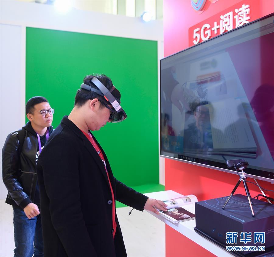 4月12日,观众在数字阅读发展与技术博览会上体验5G+ 阅读”。 当日,以“e阅读,让生活更美好”为主题的2019年第五届中国数字阅读大会在浙江杭州西湖文体中心开幕,旨在探讨全媒体时代下的数字阅读理念创新、方式创新与实践创新,不断满足人民群众日益增长的精神文化需求。 新华社记者 黄宗治 摄