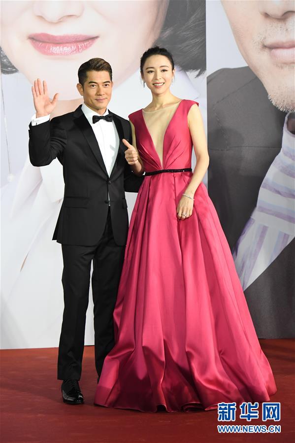 4月14日,艺人郭富城、张静初走在红地毯上。 当日,第38届香港电影金像奖颁奖典礼在香港文化中心举行。 新华社记者 吕小炜 摄