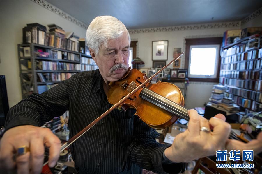 这是达维德·布思在位于美国新泽西的家中练琴(1月29日摄)。 新华社记者 王迎 摄