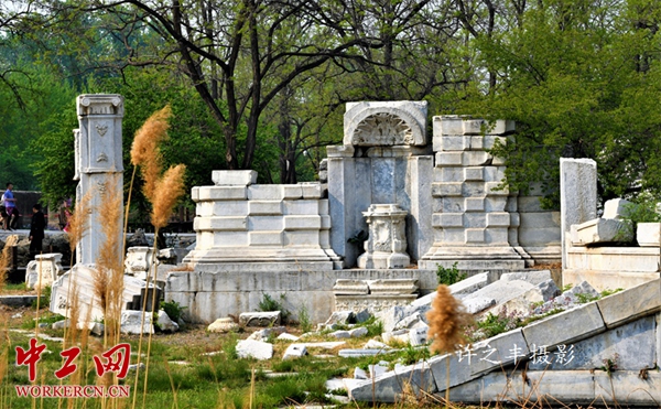 圆明园又称圆明三园,是清代大型皇家园林,它坐落在北京西北郊,与颐和园毗邻,由圆明园、长春园和绮春园组成,所以也叫圆明三园。1860年10月英法联军抢劫并纵火焚烧圆明园。而谴责最深的是《巴黎圣母院》的作者维克多·雨果(雕塑图)。1983年北京市定名为“圆明园遗址公园”。图为2019年4月17日的圆明园遗址。工人日报-中工网许之丰摄影报道