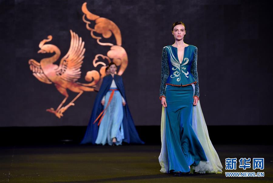 4月18日,模特在2019西安国际时尚周开幕式上进行服装展示。 当日,2019西安国际时尚周在西安大雁塔北广场拉开帷幕。为期6天的时尚周将举行“西安时尚论坛”“时尚品牌发布会”“西安时尚潮流音乐节”等活动,为古城西安打造一场异彩纷呈的文化盛宴。 新华社记者 刘潇 摄