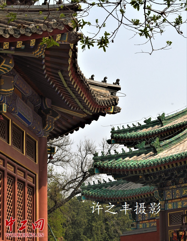正觉寺始建于唐代,初名妙觉寺。相传是有南宗八祖之尊的马祖道一开基立寺,到宋代盛况空前,历代文人对正觉寺都留有赞誉诗文。清朝帝御园圆明园这里是附属的一座佛寺,俗称喇嘛庙。圆明园两度罹劫时,因正觉寺独处绮春园墙外而幸免于难,古建筑至今保存完好。图为2019年4月17日的北京正觉寺。工人日报-中工网许之丰摄影报道