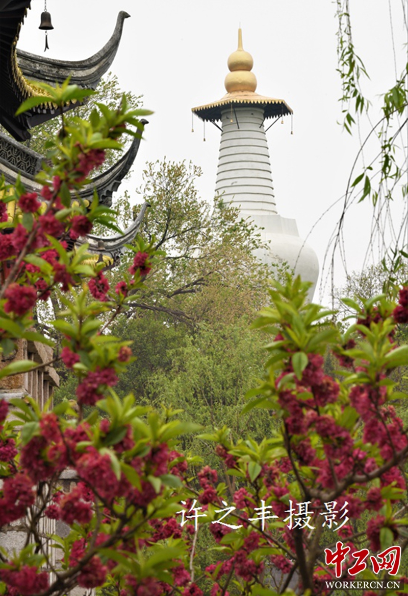 烟花三月下扬州”出自唐代诗人李白的名篇《黄鹤楼送孟浩然之广陵》。这是一首送别诗,寓离情于写景,“烟花三月”的春色和东南形胜的“扬州”。扬州地处江苏省中部,南临滔滔的长江,东依静静的京杭大运河。扬州城始建于2400余年前的春秋时期,给后人们留下了灿烂的历史文化和名胜古迹。图为2019年4月19日(农历3月15日)扬州瘦西湖景色。工人日报-中工网许之丰摄影报道