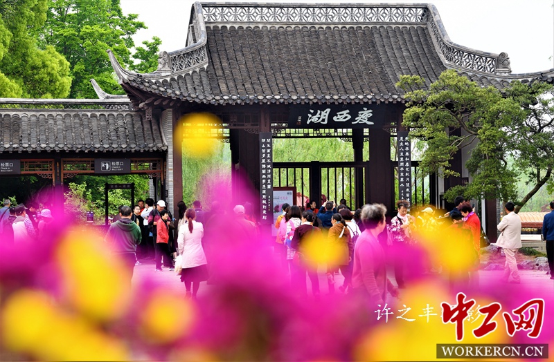 烟花三月下扬州”出自唐代诗人李白的名篇《黄鹤楼送孟浩然之广陵》。这是一首送别诗,寓离情于写景,“烟花三月”的春色和东南形胜的“扬州”。扬州地处江苏省中部,南临滔滔的长江,东依静静的京杭大运河。扬州城始建于2400余年前的春秋时期,给后人们留下了灿烂的历史文化和名胜古迹。图为2019年4月19日(农历3月15日)扬州瘦西湖景色。工人日报-中工网许之丰摄影报道