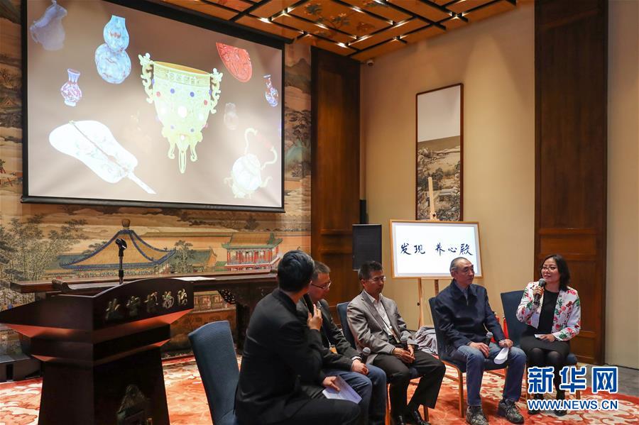 4月19日,故宫专家在“发现·养心殿——数字故宫体验展”巡展启动仪式上参与“话说养心殿”圆桌访谈。 当日,故宫博物院为“发现·养心殿——数字故宫体验展”举行巡展启动仪式。按照计划,上海将成为巡展的首站。 新华社记者 张玉薇 摄