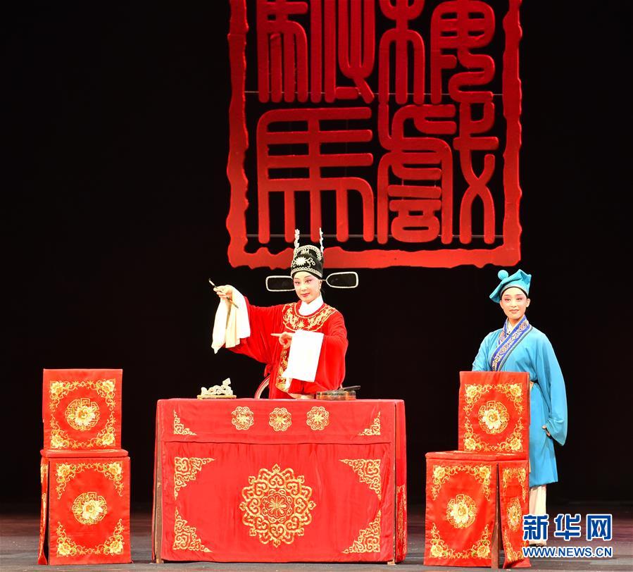演员在表演黄梅戏《女驸马》选场(4月19日摄)。 4月19日,第29届中国戏剧梅花奖黄梅戏折子戏现场竞演在南宁举行。 新华社记者 曹祎铭 摄