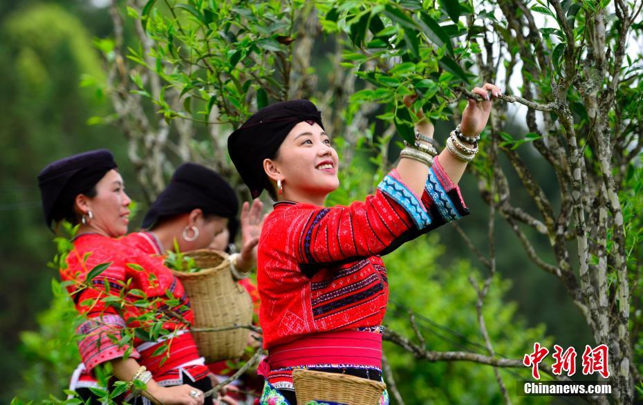瑶族姑娘在茶园里采茶。潘志祥 摄
