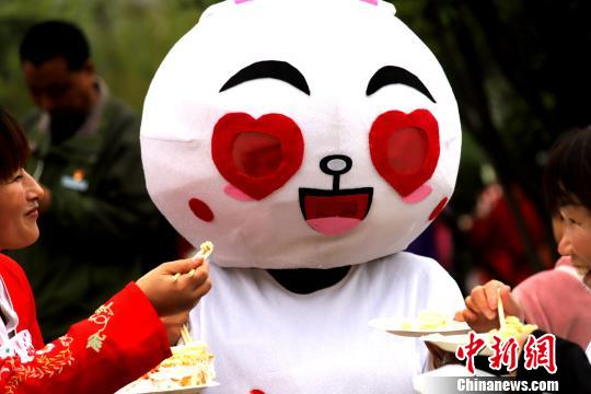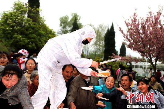 赏花现场,主办方还制作了一个直径达3米的巨型牡丹花糕,吸引上千人排队等候免费品尝。