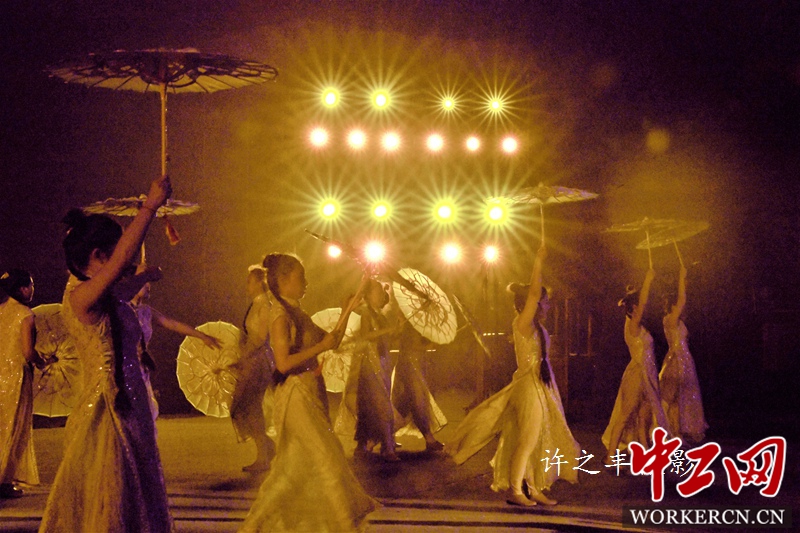 2019年4月19日晚,江苏扬州市一场舞台剧《春江花月夜》坐落于风景如画的瘦西湖畔。喜欢扬州的美,因为烟花时节百花齐放,色彩斑驳;喜欢扬州的静,因为瘦西湖一泓碧玉的湖水,如梦似幻;喜欢扬州的雅,因为久仰“月亮城”的盛名;现如今,更喜欢扬州的“夜”的,因为瘦西湖畔上演着《春江花月夜·唯美扬州》。该剧依托扬州深厚的历史文化和秀丽的自然风光,深入挖掘扬州的古老传说和神话,力求原汁原味地再现江南园林风情,展现扬州美丽多姿的自然景观和人文魅力。工人日报-中工网许之丰摄影报道