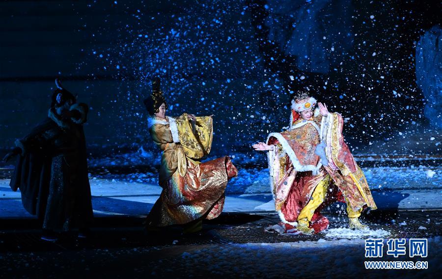 4月20日,演员演绎文成公主进藏过程中的艰辛。 新华社记者 李鑫 摄