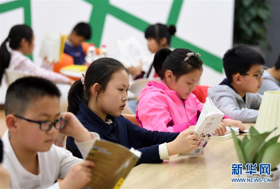 4月21日,小朋友们在上派镇一家社区“书吧”内阅读图书。近年来,安徽省肥西县上派镇着力营造良好的阅读氛围,在居民生活集中区建设多个社区“书吧”,打造“一刻钟阅读圈”,倡导全民阅读。新华社记者 刘军喜 摄