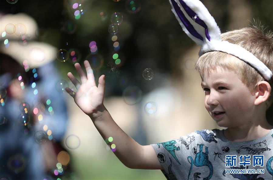 4月21日,在澳大利亚悉尼皇家植物园,小游客参加寻找彩蛋活动。 当日是复活节,许多儿童和家长在澳大利亚悉尼皇家植物园参加一年一度的扮兔子寻彩蛋活动。 新华社记者 白雪飞 摄