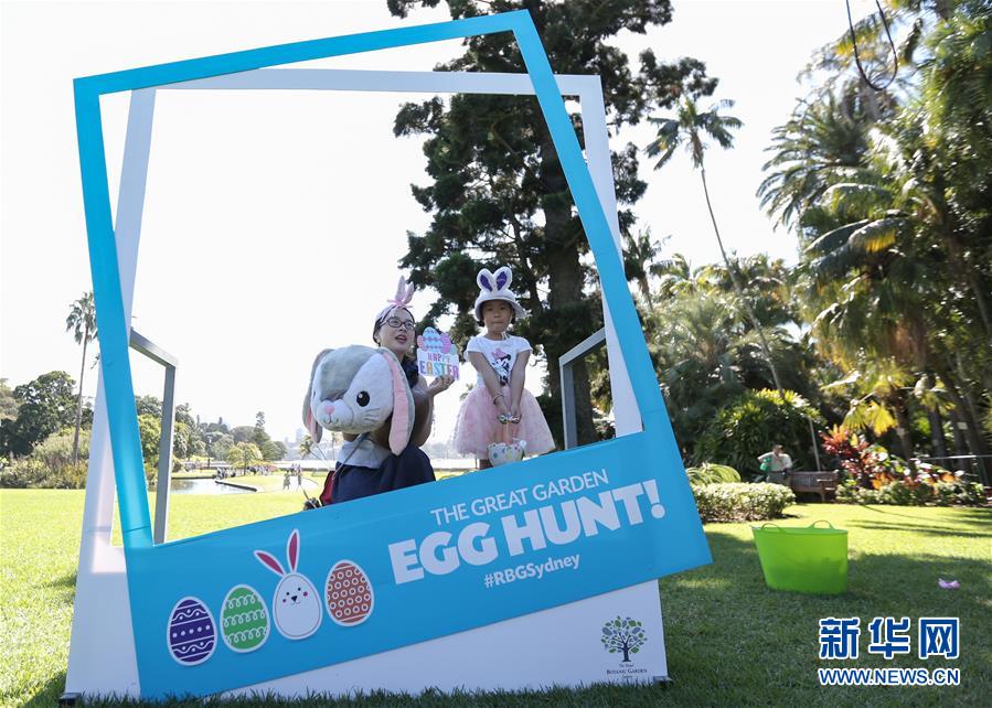 4月21日,在澳大利亚悉尼皇家植物园,游客在寻找彩蛋活动中留影。 当日是复活节,许多儿童和家长在澳大利亚悉尼皇家植物园参加一年一度的扮兔子寻彩蛋活动。 新华社记者 白雪飞 摄