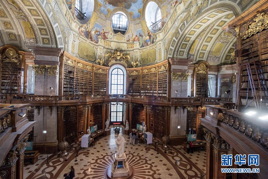 这是4月18日在奥地利维也纳拍摄的奥地利国家图书馆的普隆克厅。