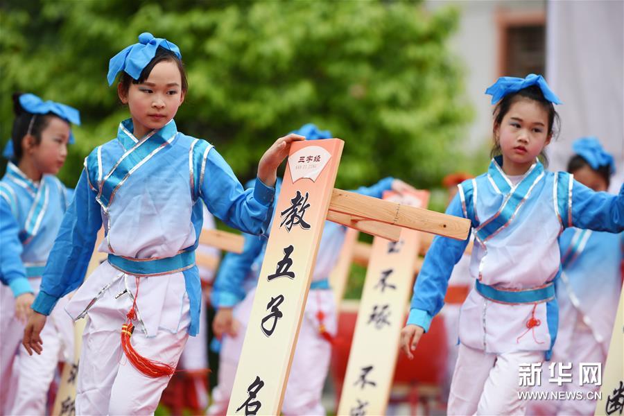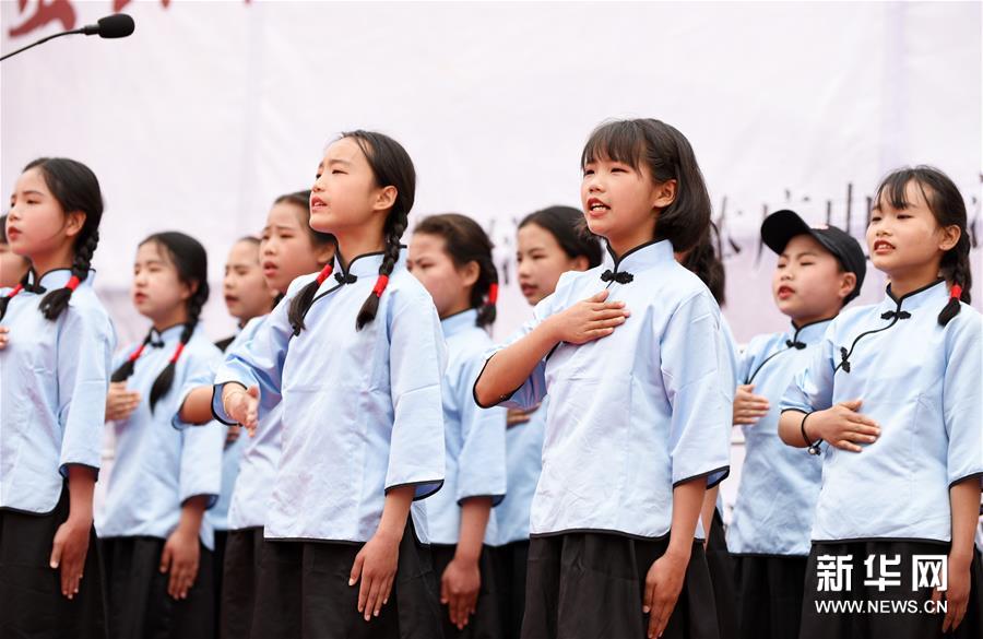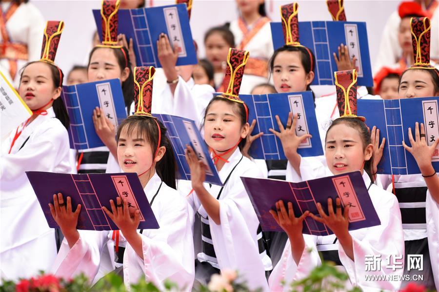 4月22日,贵州省剑河县的学生在诵读《千字文》。 新华社记者 杨文斌 摄