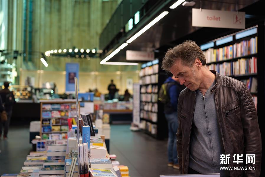 4月16日,在荷兰马斯特里赫特多米尼加书店,一名读者在选购图书。 新华社记者 张铖 摄