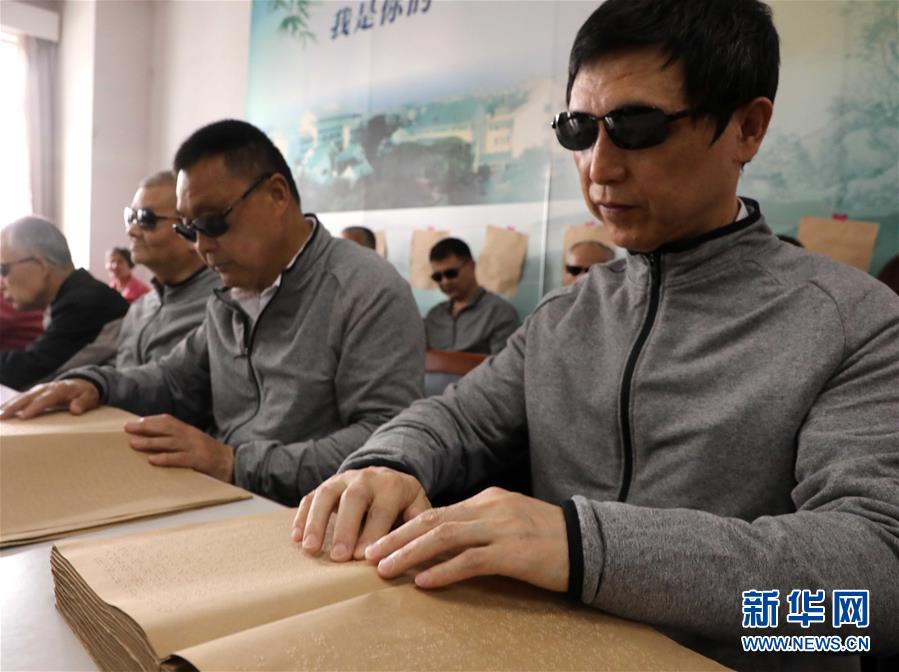 4月23日,盲人读者在江苏省苏州市的苏州图书馆盲文阅览室用指尖“读书”。当日是世界读书日。新华社发(杭兴微 摄)