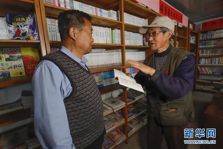 4月23日,邢树林老人(右)与借阅图书的农民在交流。今年80多岁的邢树林,是河北省遵化市兴旺寨乡沙坡峪村人,他在自家创办了“农家图书室”,方便村民读书。 近年来,各地不断推进农村文化建设,越来越多的农家书屋、图书超市在农民家门口建成,丰富了农民的精神文化生活。 新华社发(刘满仓 摄)