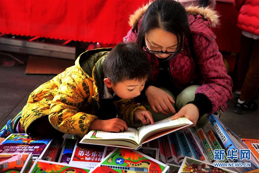 4月23日,在江西省靖安县双溪镇双溪村,一名家长带着孩子在村口的流动图书超市里看书。 近年来,各地不断推进农村文化建设,越来越多的农家书屋、图书超市在农民家门口建成,丰富了农民的精神文化生活。 新华社发(徐仲庭 摄)