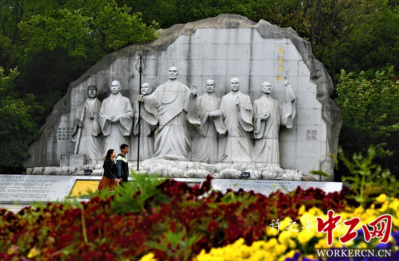 大明寺位于江苏省扬州市,始建于南朝宋孝武帝大明年间。历经1500多年沧桑岁月的大明寺,历史上几经战火几度重建。这里是佛教庙宇,曾经出了一位唐代高僧鉴真和尚。该寺雄踞在蜀冈中峰之上,依山面水,俯瞰风景秀丽,及文物古迹和园林风光于一体,历来享有“淮东第一观”之盛名。图为2019年4月20日的扬州大明寺。工人日报-中工网许之丰摄影报道