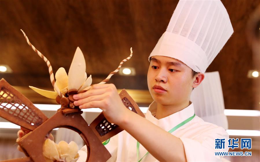 4月23日,一名参赛选手在制作艺术面包。 当日,2019年中国技能大赛——第二十届全国焙烤职业技能竞赛上海赛区的比赛在上海环球港举行,来自焙烤行业的60余名选手在装饰蛋糕、月饼制作和面包制作三个大项上进行技能比拼。 新华社记者 方喆 摄