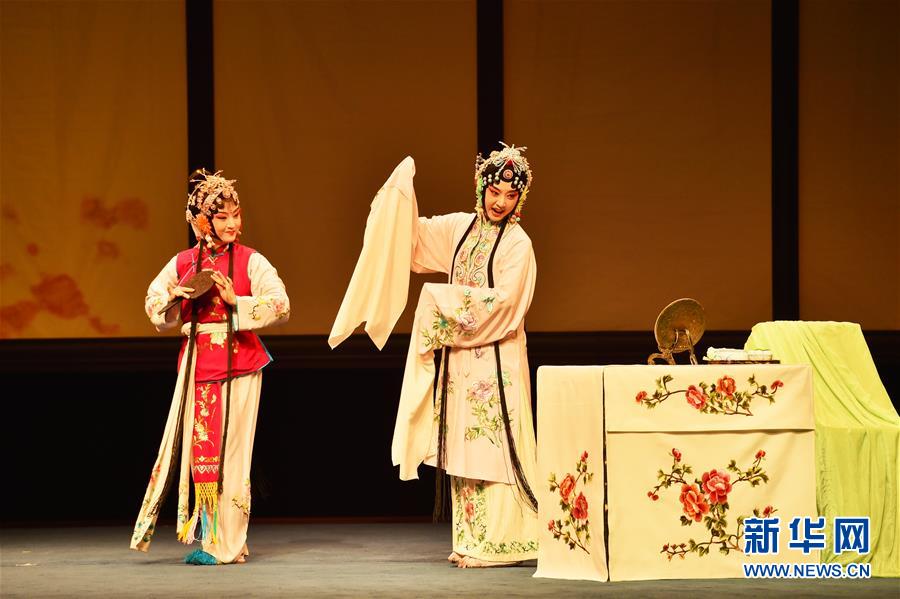 4月23日,演员在表演昆曲《牡丹亭》。 当日,由江苏省演艺集团昆剧院报送的昆曲《牡丹亭》在广西南宁参加第29届中国戏剧梅花奖现场竞演。 新华社记者 曹祎铭 摄