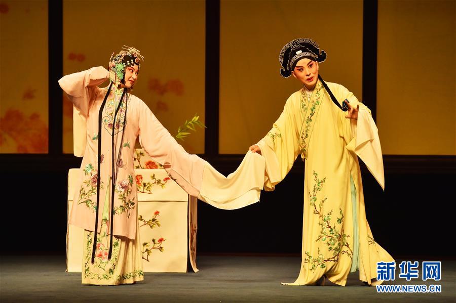 4月23日,演员在表演昆曲《牡丹亭》。 当日,由江苏省演艺集团昆剧院报送的昆曲《牡丹亭》在广西南宁参加第29届中国戏剧梅花奖现场竞演。 新华社记者 曹祎铭 摄