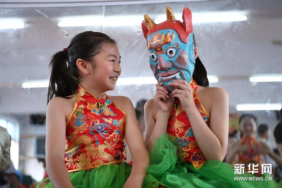 江西省南丰傩舞历史悠久。为使传统傩文化得以传承,南丰县通过编排傩舞文艺节目、举办知识讲座、开展主题演讲等活动,大力推进傩文化进校园,让全县中小学生充分感受中国传统文化的魅力。 新华社记者 万象 摄