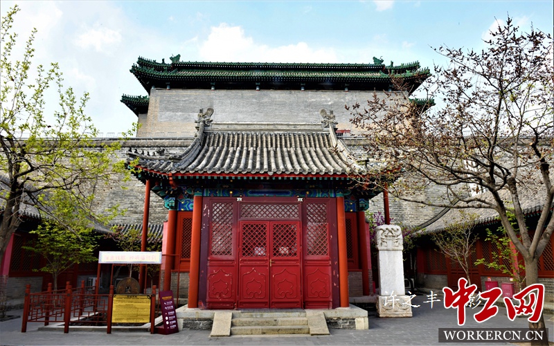 北京德胜门真武庙位于城门瓮城北部,箭楼之下,建于明万历年间。庙宇坐北朝南,分东、中、西三路,中路院内钟鼓楼分立左右,三间正殿前出抱厦,两侧各有配殿,整座庙宇布局紧凑。真武即玄武,是北方之神,具有龟蛇缠绕的形象。真武崇拜兴起于宋元,明代达到极盛。德胜门真武庙解放初期被拆,1992年开始复建,现成为古代钱币展览馆。图为2019年4月12日的真武庙景色。工人日报-中工网许之丰摄影报道