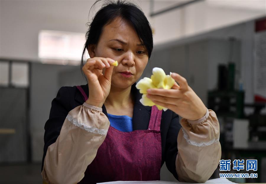 4月25日,洛阳牡丹瓷股份有限公司的员工为牡丹瓷半成品修釉。 洛阳牡丹瓷以河南洛阳牡丹花为原型,以瓷器为载体,结合白瓷烧制技艺,生动立体地展现牡丹花的雍容华贵。牡丹瓷造型端庄,色彩鲜艳,形象逼真,将牡丹文化与陶瓷文化相结合,成为当地特色文化。 新华社记者 李嘉南 摄