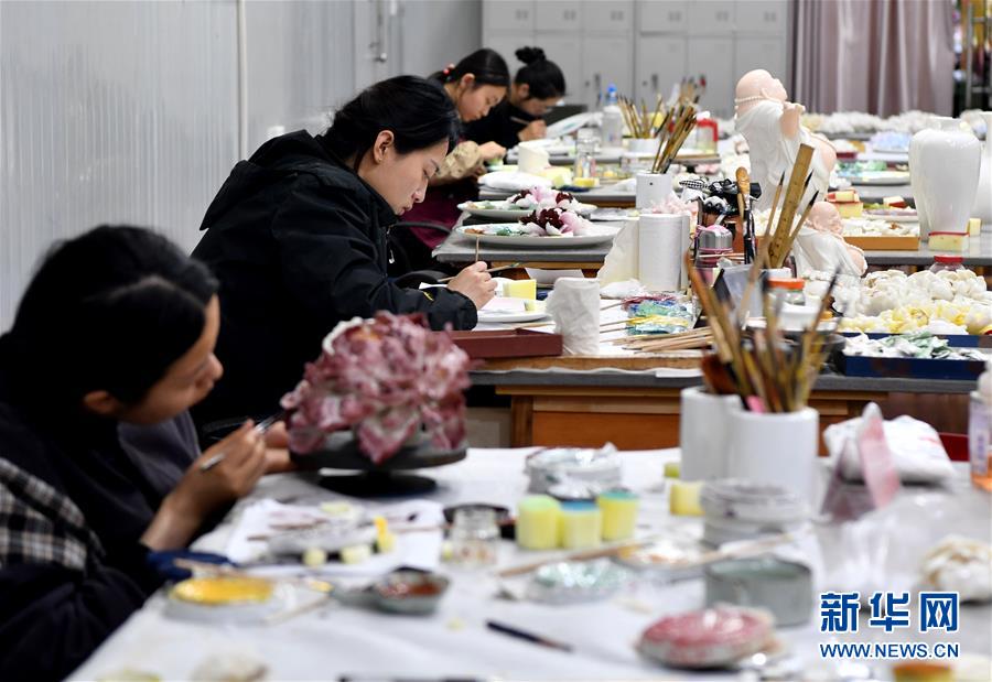 4月25日,洛阳牡丹瓷股份有限公司的员工为牡丹瓷半成品上色。 洛阳牡丹瓷以河南洛阳牡丹花为原型,以瓷器为载体,结合白瓷烧制技艺,生动立体地展现牡丹花的雍容华贵。牡丹瓷造型端庄,色彩鲜艳,形象逼真,将牡丹文化与陶瓷文化相结合,成为当地特色文化。 新华社记者 李嘉南 摄