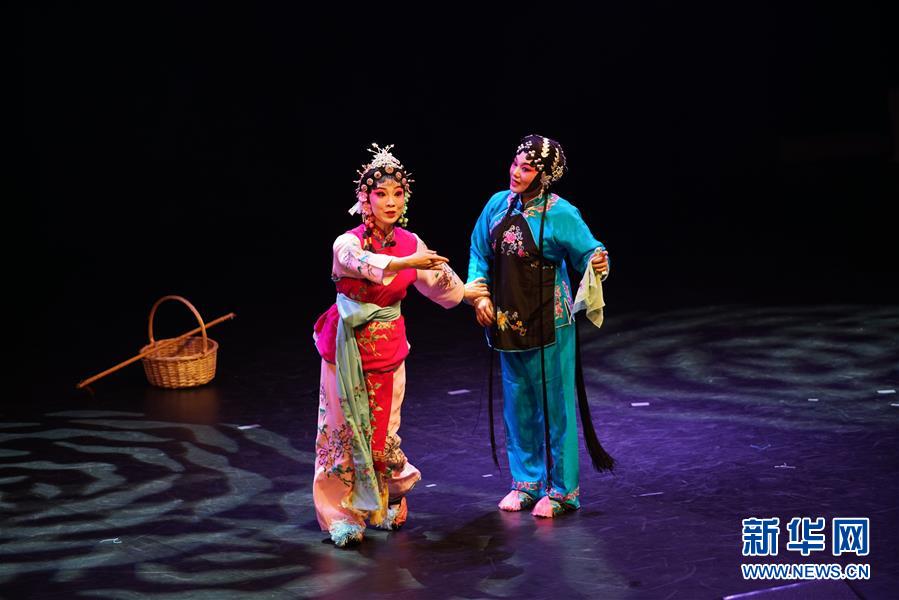这是江西省政府新闻办公室主办的采茶戏欧洲巡演的第一站。除传统采茶戏外,巡演团当天还表演了京剧及川剧“变脸”等节目。 新华社发(科什奈洛娃摄)