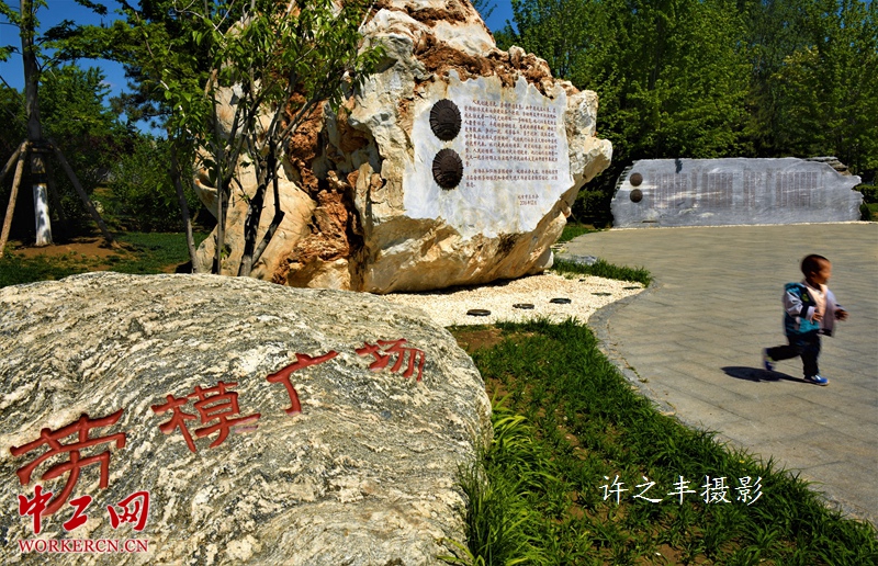 北京劳模广场,位于北京明城墙遗址公园西侧,是北京市总工会设立。为在全社会大力弘扬“劳动光荣”价值理念和敬业风气。石碑按年代铭刻了1950年至2015年的1197名北京市历届全国劳动模范和全国先进工作者共名录。以“劳模墙”为传承载体,弘扬劳模精神、劳动精神、工匠精神。图为2019年4月25日的北京劳模广场。工人日报-中工网许之丰摄影报道
