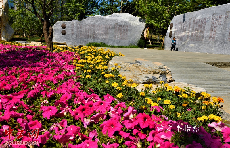 北京劳模广场,位于北京明城墙遗址公园西侧,是北京市总工会设立。为在全社会大力弘扬“劳动光荣”价值理念和敬业风气。石碑按年代铭刻了1950年至2015年的1197名北京市历届全国劳动模范和全国先进工作者共名录。以“劳模墙”为传承载体,弘扬劳模精神、劳动精神、工匠精神。图为2019年4月25日的北京劳模广场。工人日报-中工网许之丰摄影报道