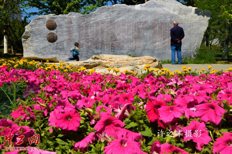 北京劳模广场,位于北京明城墙遗址公园西侧,是北京市总工会设立。为在全社会大力弘扬“劳动光荣”价值理念和敬业风气。石碑按年代铭刻了1950年至2015年的1197名北京市历届全国劳动模范和全国先进工作者共名录。以“劳模墙”为传承载体,弘扬劳模精神、劳动精神、工匠精神。图为2019年4月25日的北京劳模广场。工人日报-中工网许之丰摄影报道