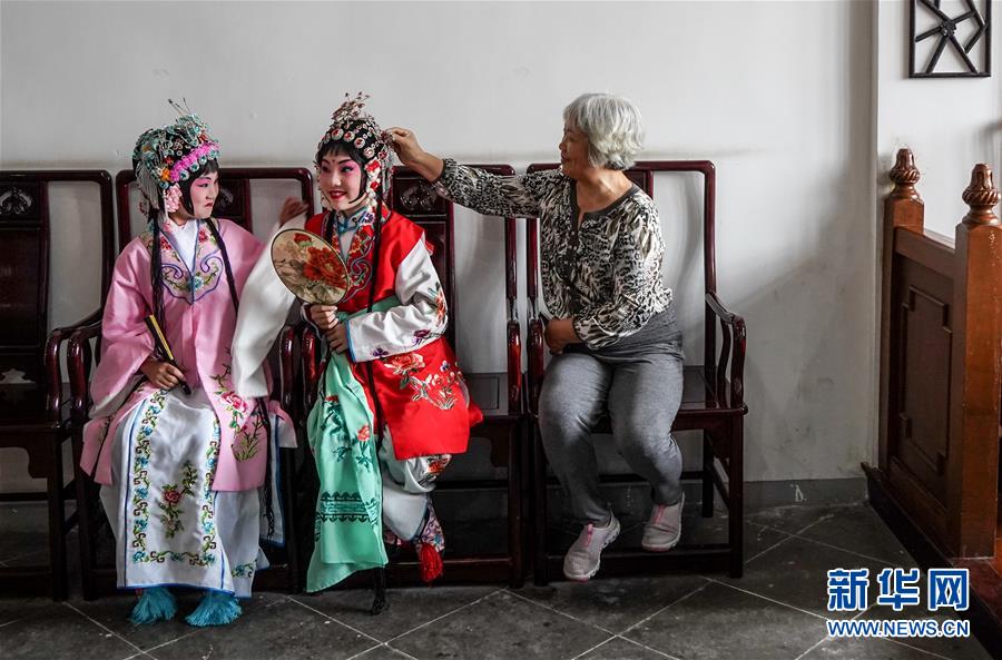 4月26日,千灯镇中心小学小昆班学生准备上古戏台表演。 江苏省昆山市千灯镇是有2500多年历史的古镇,也是中国古老戏曲剧种昆曲的发源地。千灯镇人学昆曲、唱昆曲,蔚然成风。 新华社记者 杨磊 摄